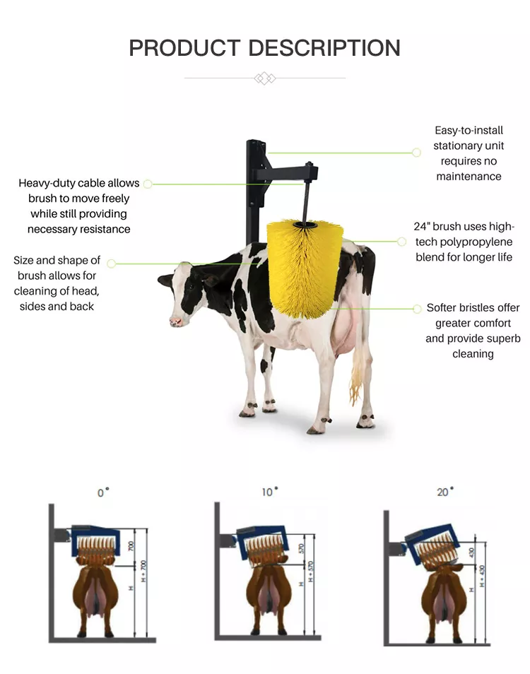 2. Tənzimlənən 0°/10°/20° bucaqları müxtəlif ölçülü mal-qaraya uyğundur və başın, yanların və arxanın təmizlənməsinə imkan verir.